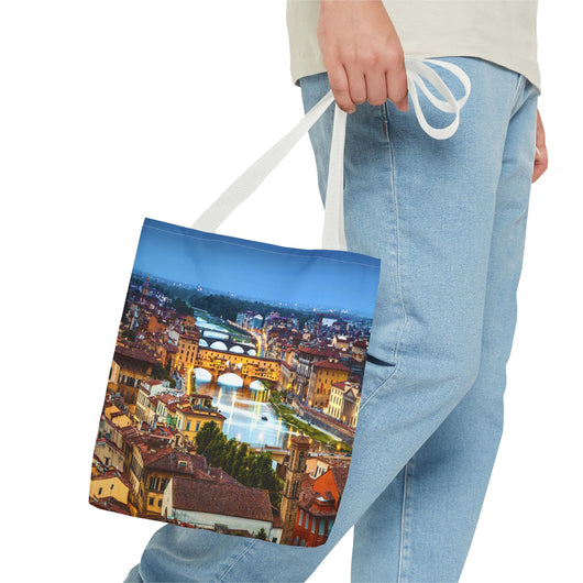 Florence II Cityscape Tote Bag — Ponte Vecchio Nightscape All-Over Print