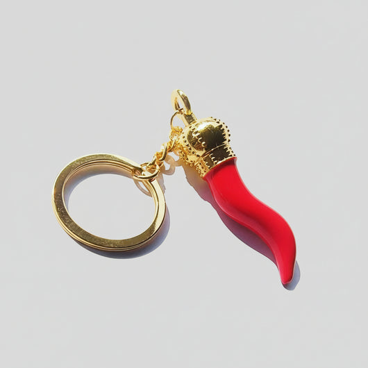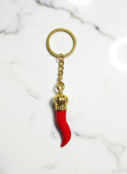 ✅ 2” Red plastic Italian horn with 1.12” Gold Keyring attached